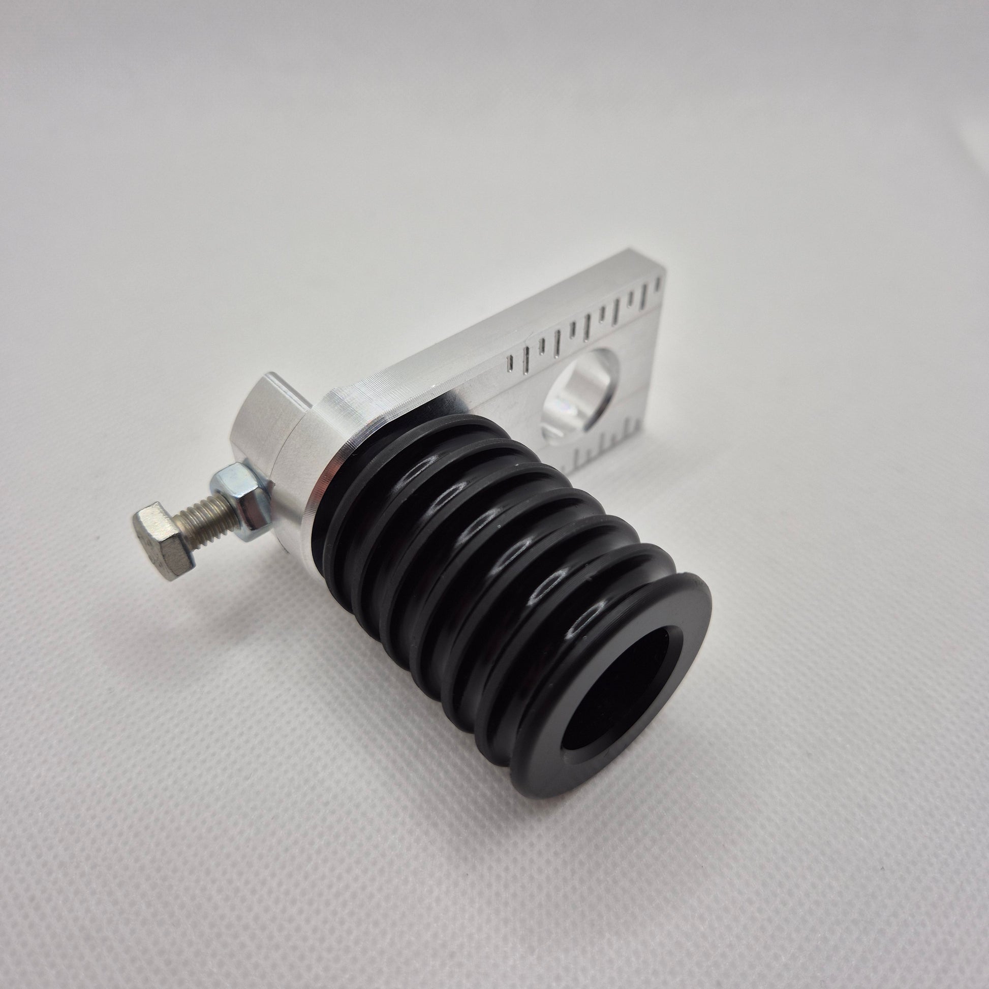 Verbessern Sie die Kettenspannung Ihrer Yamaha YZ65 mit diesem präzisionsgefertigten Kettenspanner aus Aluminium 7075 mit auswechselbarem POM-Schützer. Die Kombination aus extrem widerstandsfähigem Flugzeugaluminium und einem langlebigen POM-Kunststoffschutz sorgt für maximale Stabilität und Schutz.