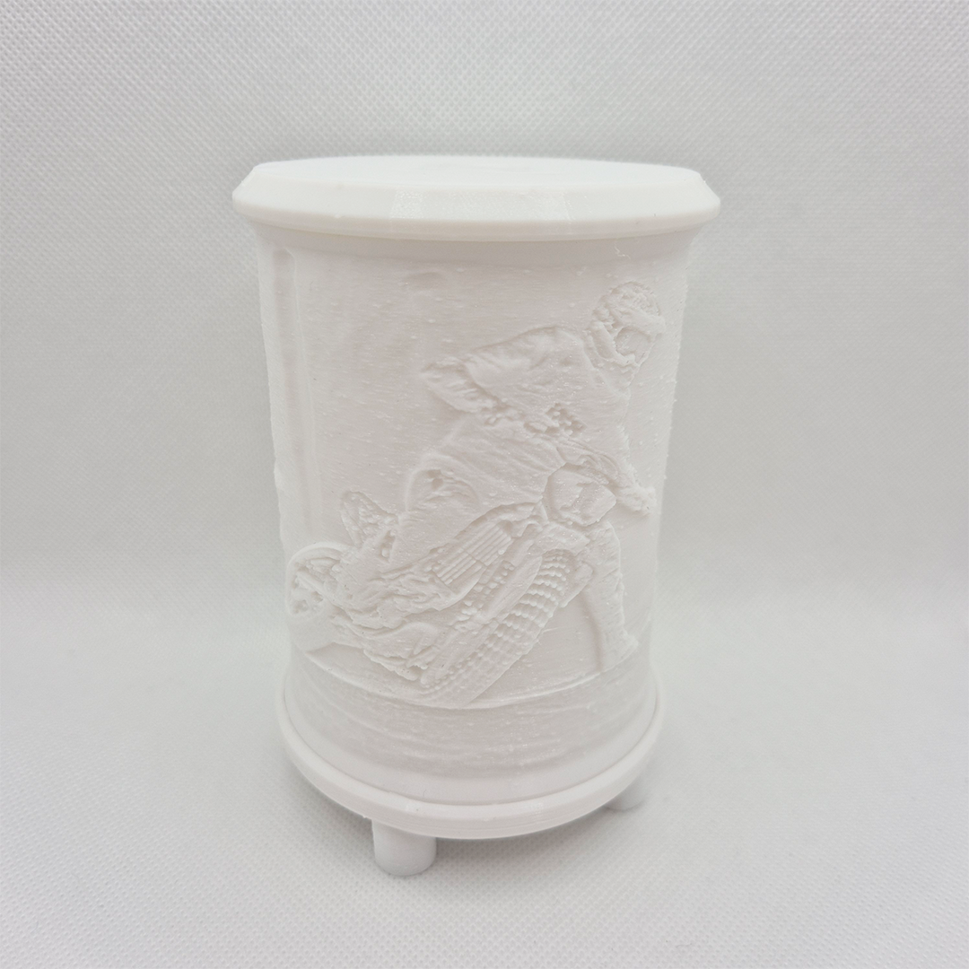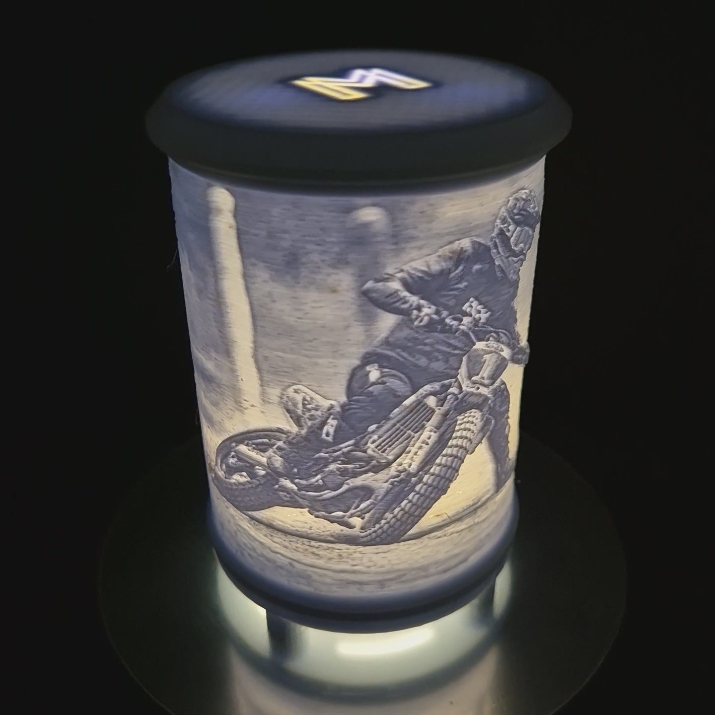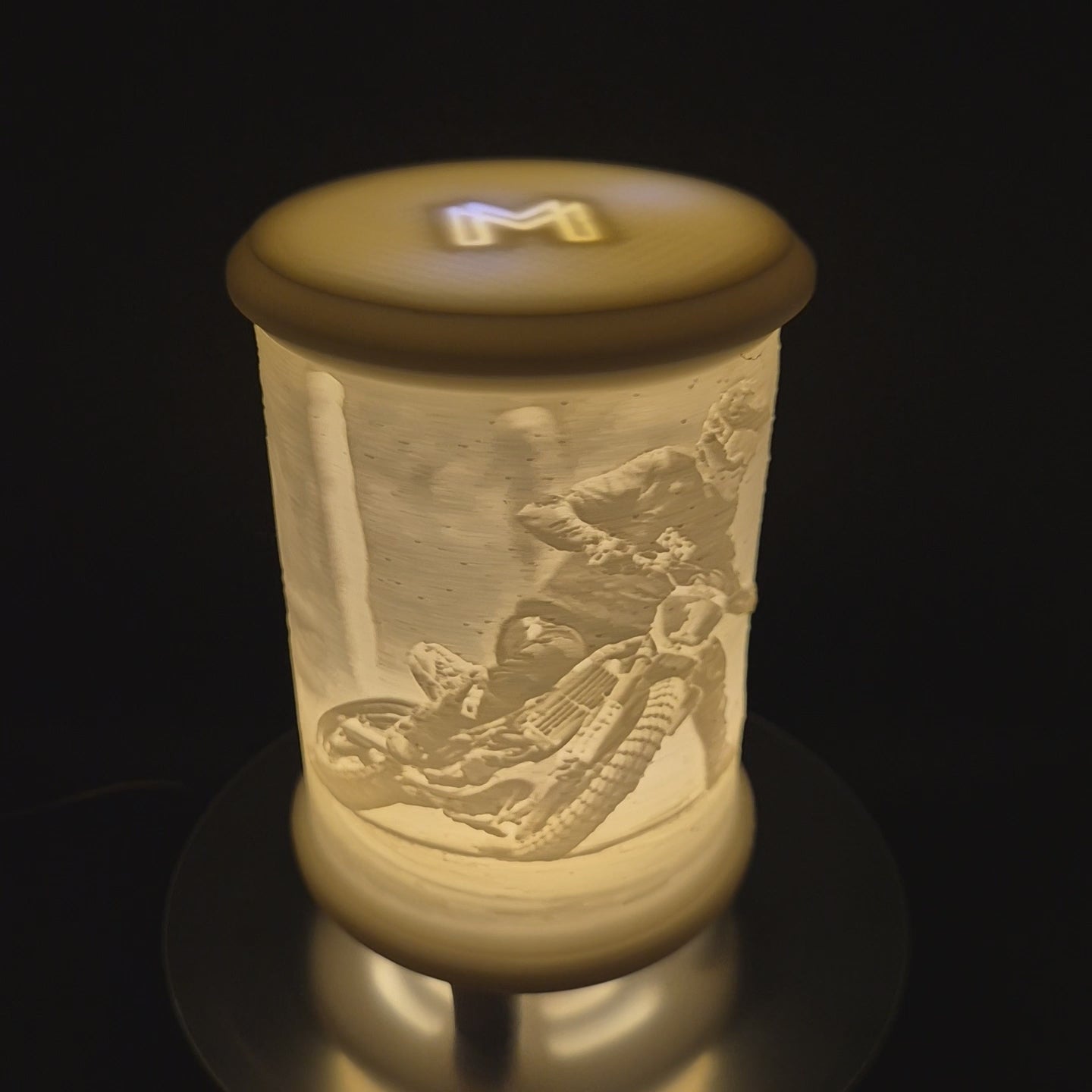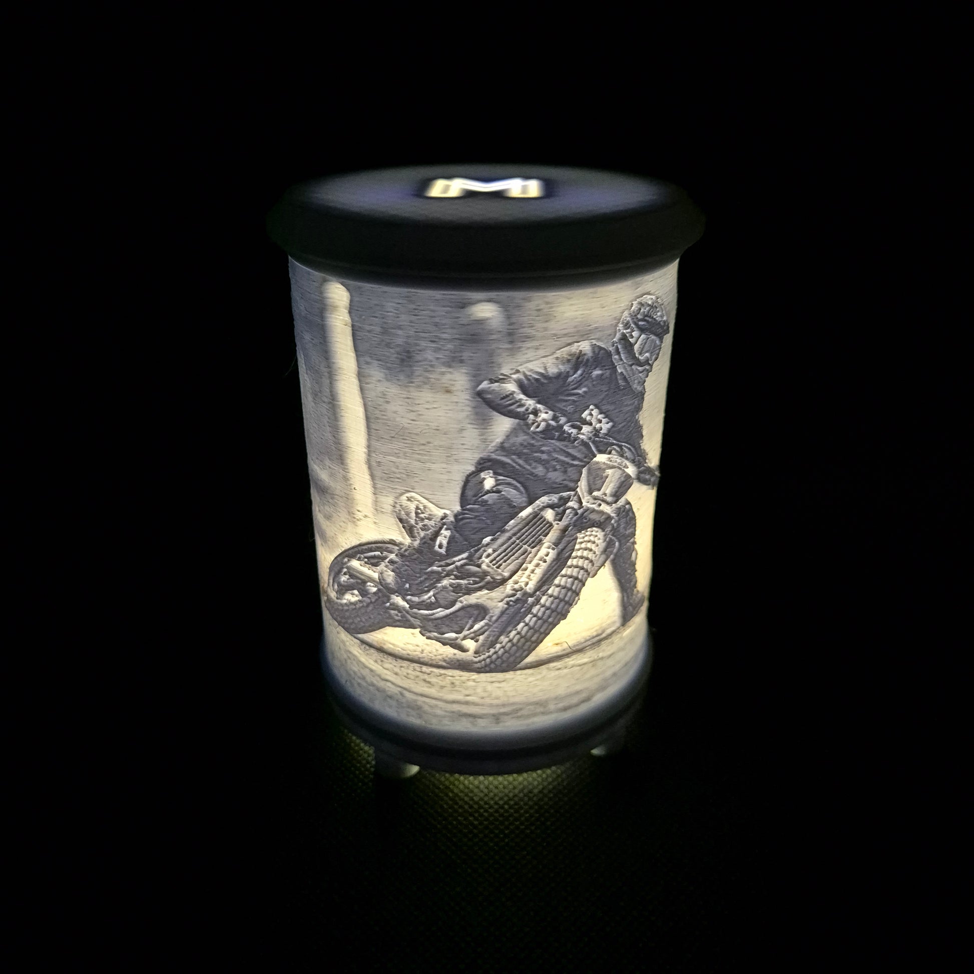 Diese Nachttischlampe wird im Verfahren der Lithographie hergestellt. Kombiniert mit einer integrierten LED-Lampe im Fussteil, erzeugt das 3D-Druckteil bezaubernde Bilder. Ob als Geschenk oder für den eigenen Gebrauch – diese Lampe zieht garantiert alle Blicke auf sich.