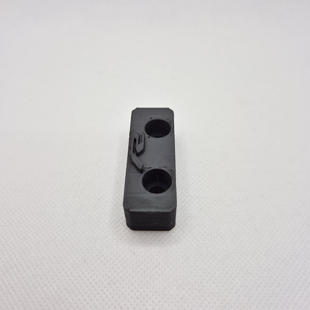 Der linke Distanzblock verfügt ebenfalls über zwei Gewinde zur Befestigung des Kunststoffschutzes.